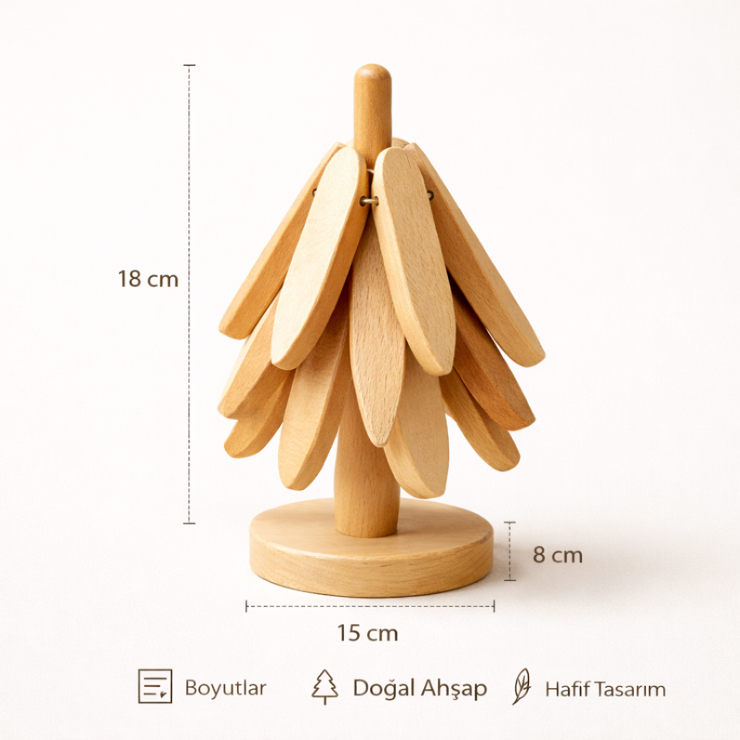 Doğal ahşaptan üretilen katlanır nihale seti; sıcak kaplara karşı güvenli kullanım sunar, yüzeyleri korur ve mutfağınıza zamansız bir şıklık kazandırır. Dayanıklı yapısı, katlanabilir tasarımı ve çok amaçlı kullanımıyla günlük mutfak düzeniniz için ideal bir çözümdür.