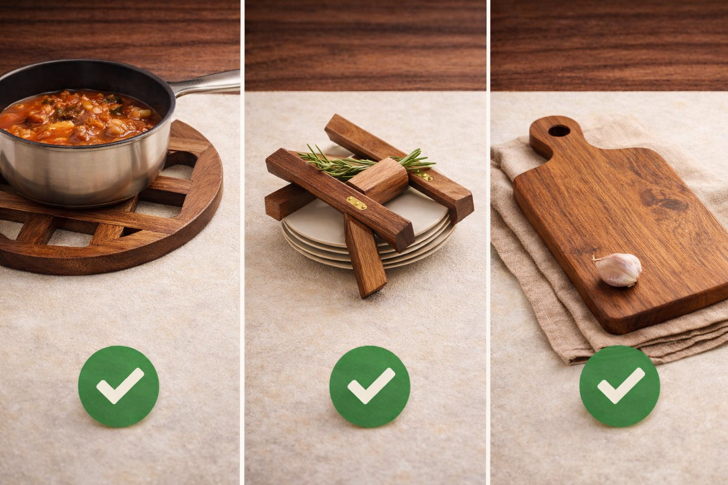 Evet. Doğal ahşap yapısı sayesinde yüksek ısıya dayanıklıdır ve masa yüzeylerini yanmaya karşı korur.